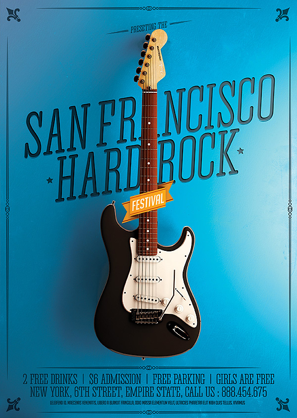 Minimal Rock Festival Posters : A Fresh Minimal Rock festival poster design, with 3 Guitars, and backgrounds, all built in 3Ds max specifically for this flyer template, You can easily change Texts,