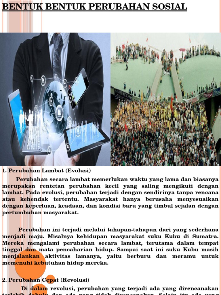 Perubahan Sosial Lambat (Evolusi) dan Cepat (Revolusi) by tiara kusumadewi