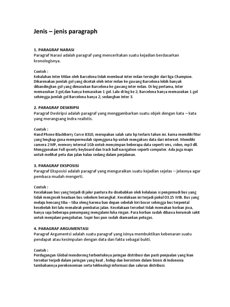 Jenis – jenis paragraph: 1. Paragraf Narasi