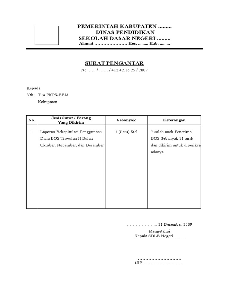 Surat Pengantar Laporan Penggunaan Dana BOS