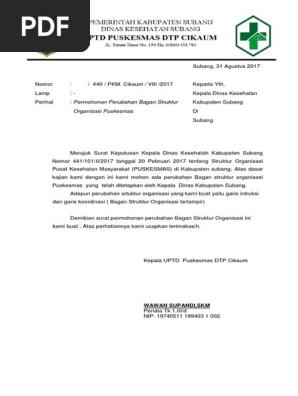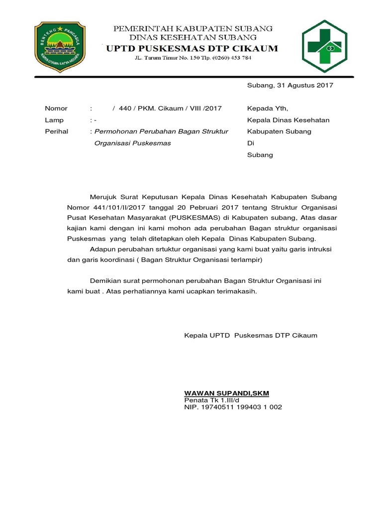Contoh Surat Pengajuan Perubahan Struktur Organisasi