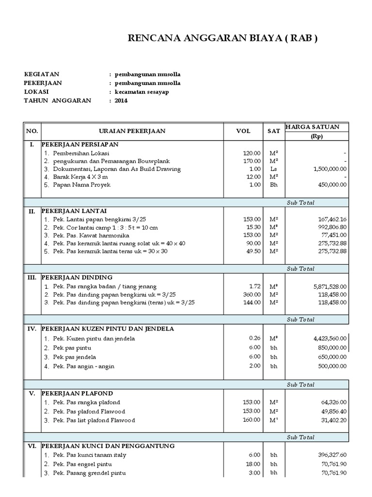 RENCANA ANGGARAN BIAYA PEMBANGUNAN | Mushola AL FALAH