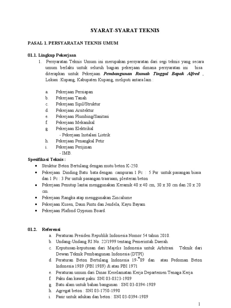 RKS Proyek Pembangunan Rumah Tinggal Tingkat 2