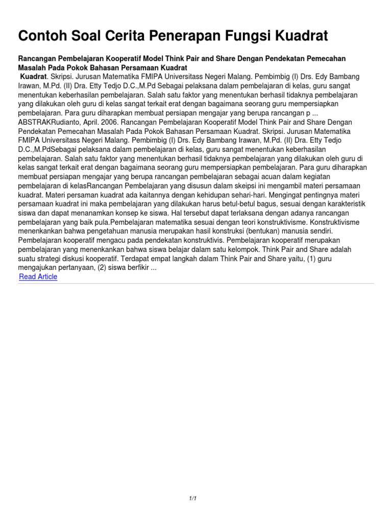Contoh Soal Cerita Penerapan Fungsi Kuadrat - PDF Free Download