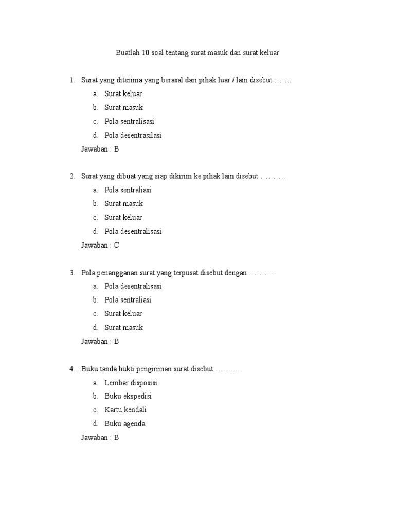 Contoh Soal Pilihan Ganda Tentang Surat Dinas Beserta Jawabannya - Contoh Seputar Surat