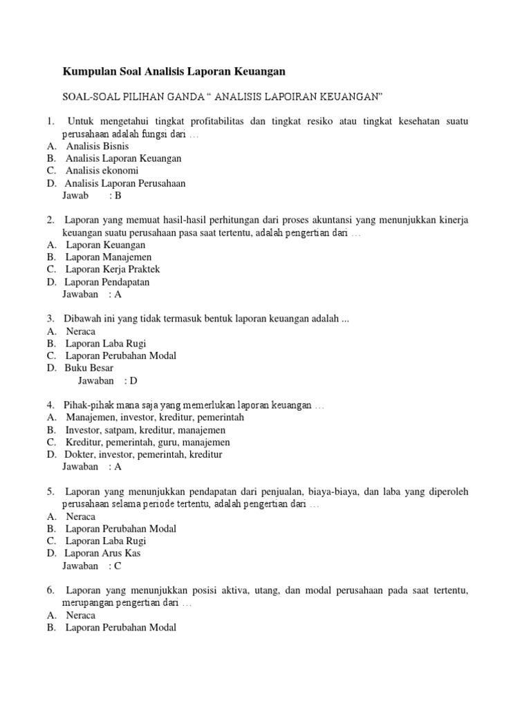 Kumpulan Soal Analisis Laporan Keuangan