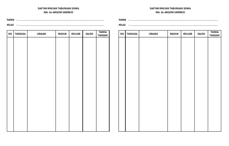 Contoh Desain Buku Tabungan Kelas dan Cara Membuatnya di Word - Dokumen Sekolah Dasar