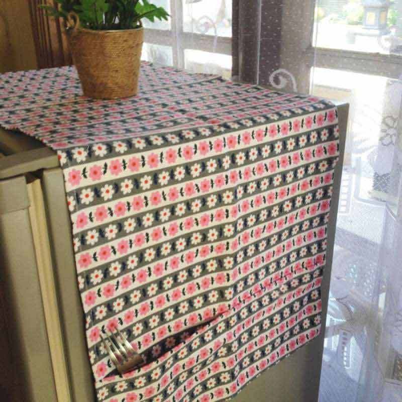 Alas + Sarung Penutup Kulkas & Lemari Es / Cover Kulkas Kain Corak Bunga Dengan Kantong Penyimpanan (Free Kejutan Didalam Paket) | Lazada Indonesia
