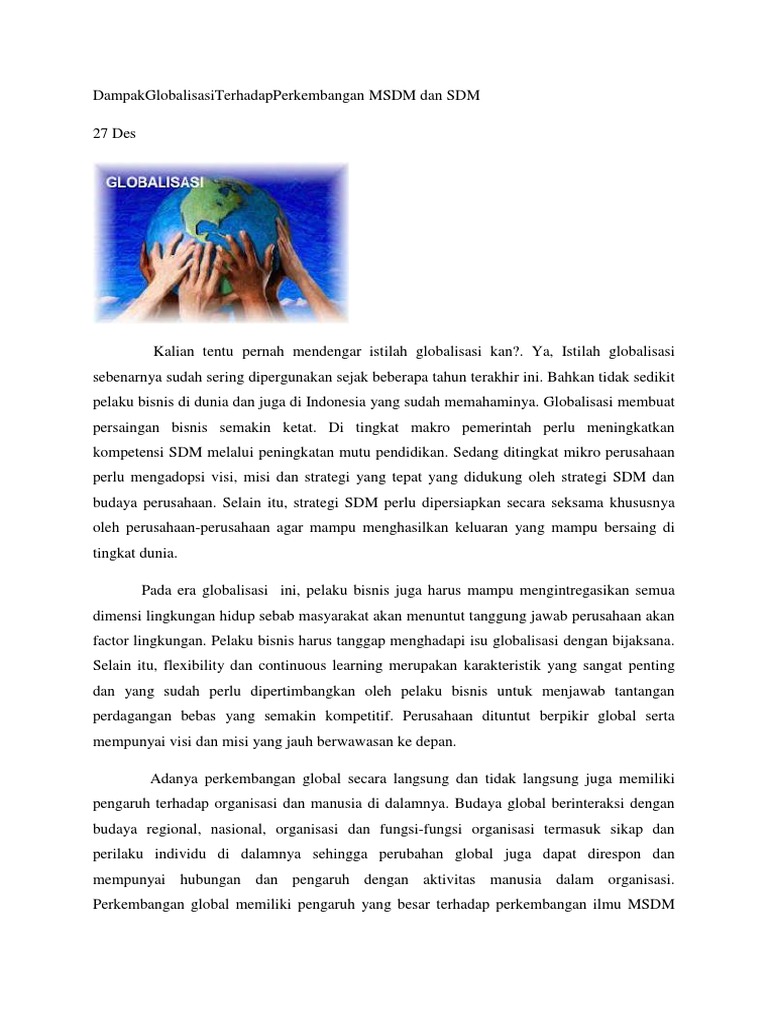 Dampak Globalisasi Terhadap Perkembangan MSDM