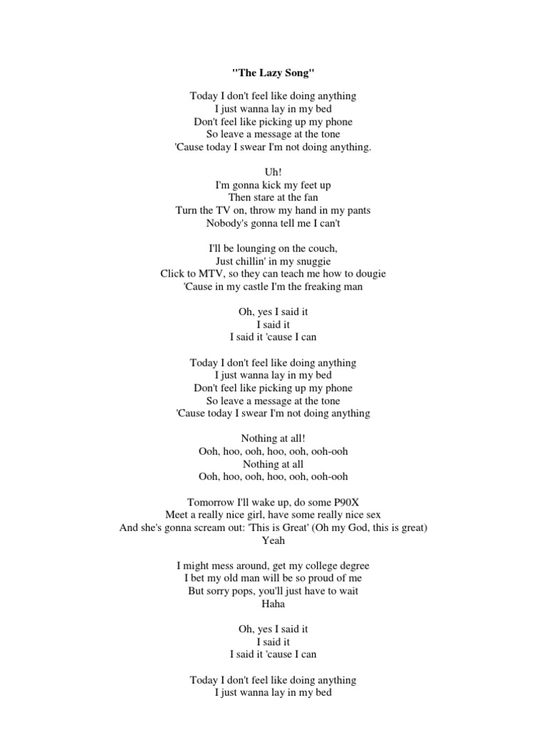 The Lazy Song | American Compositions And Recordings | Songs Written