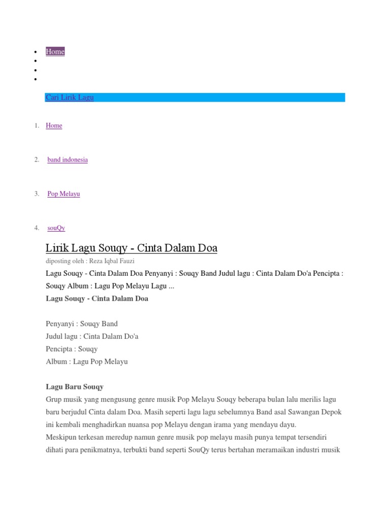 SouQy Band - Cinta Dalam Doa Video Lirik Lagu | Lagu, Lirik lagu, Lirik