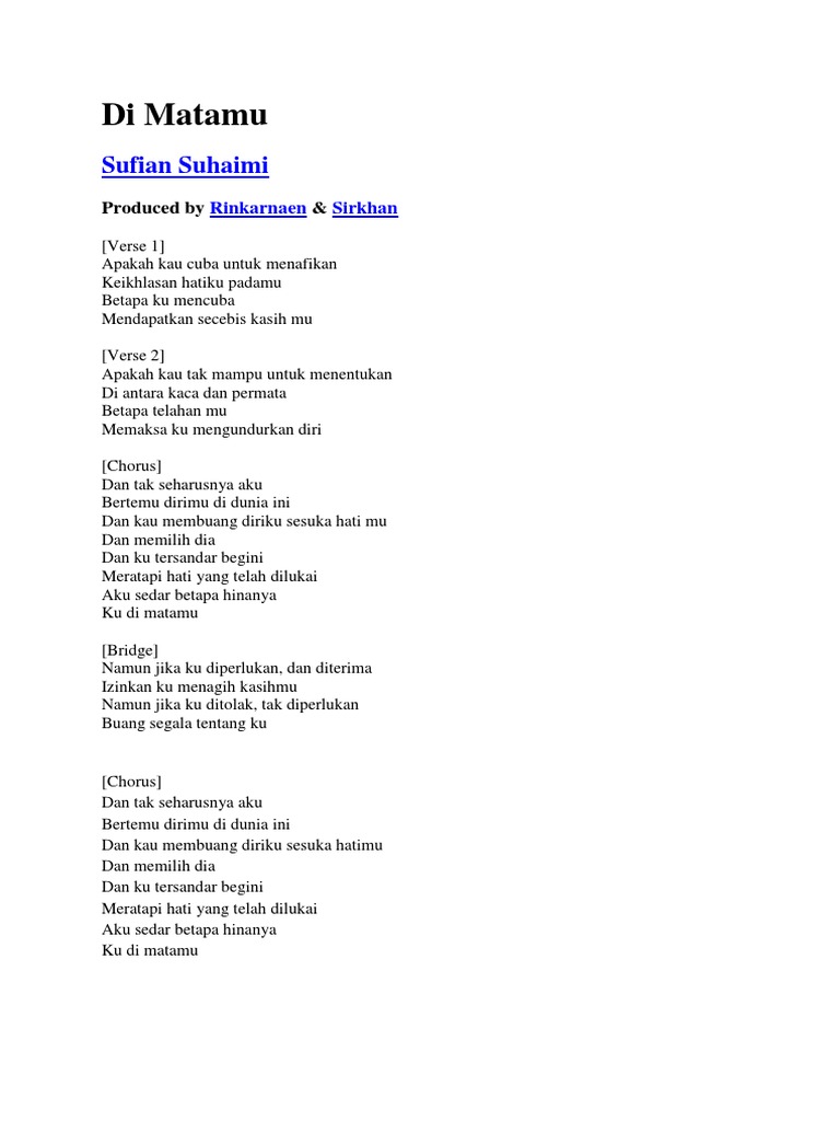 Lirik Lagu Pop Indo - Di Matamu - Shufian Suhaimi - Wattpad
