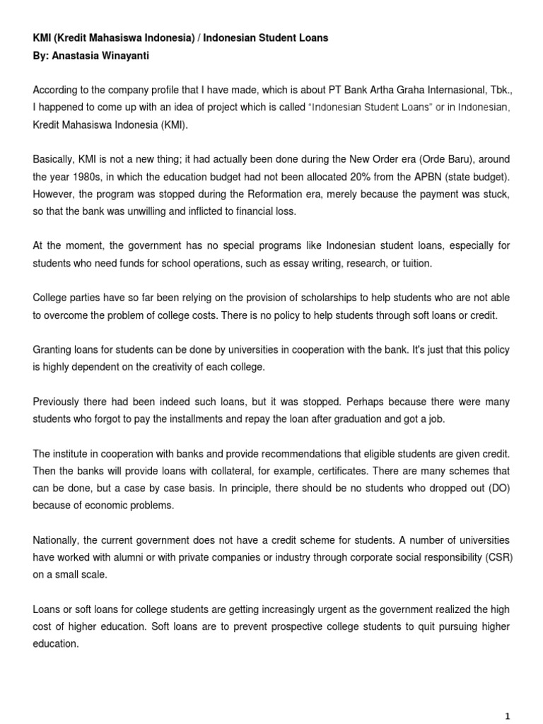 KMI Kredit Mahasiwa Indonesia - Indonesian Student Loans - Essay | Student Loan | Credit (Finance)