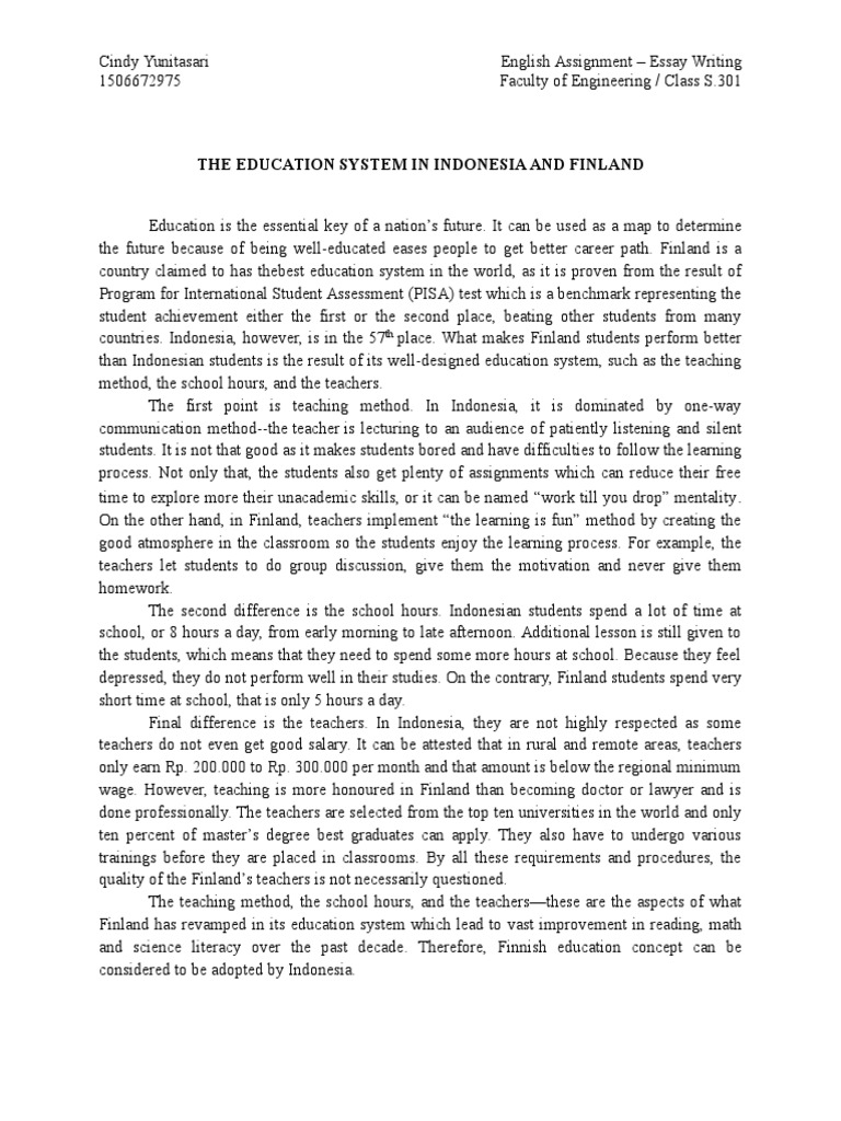 Final Test Essay - Should Finland’s Education System Be Applied in Indonesia? - Wattpad