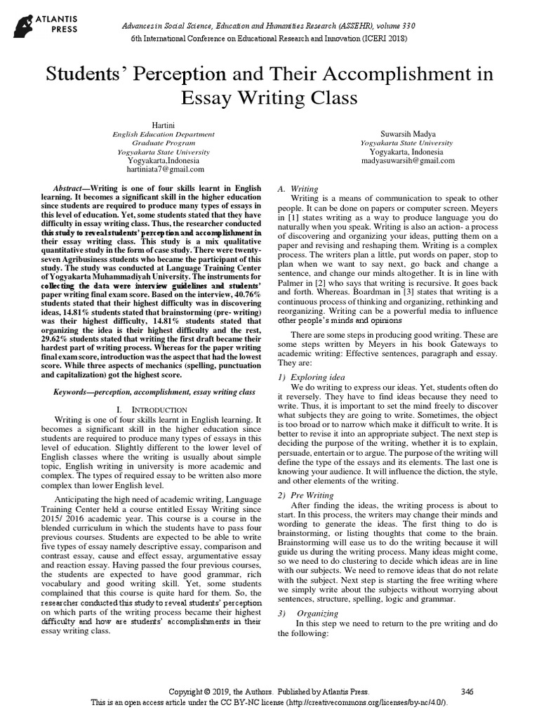 PDF) Essay Writing Skill of the Fourth Semester Students of STKIP PGRI Bandar Lampung
