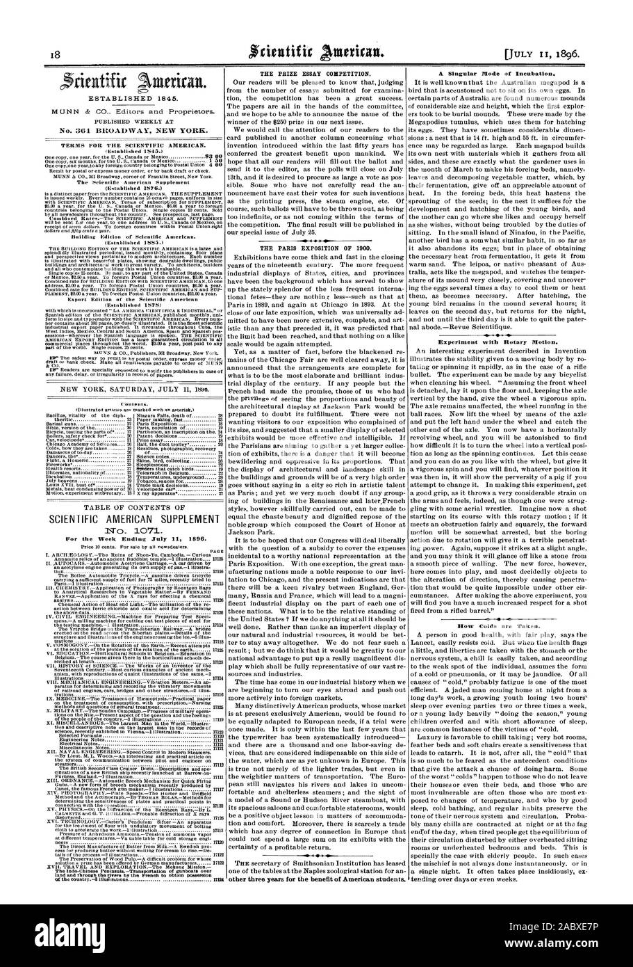 SCIENTIFIC AMERICAN SUPPLEMENT of the country.-3 illustrations 17124 THE PRIZE ESSAY COMPETITION. THE PARIS EXPOSITION OF 1900. A Singular Node of Incubation. Experiment with Rotary notion., 1896-07-11 Stock Photo - Alamy