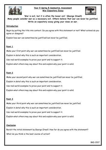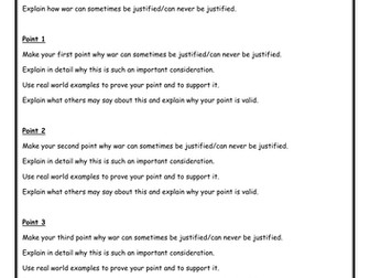 Exposition Essay on War - Writing Frames and Success Criteria | Teaching Resources