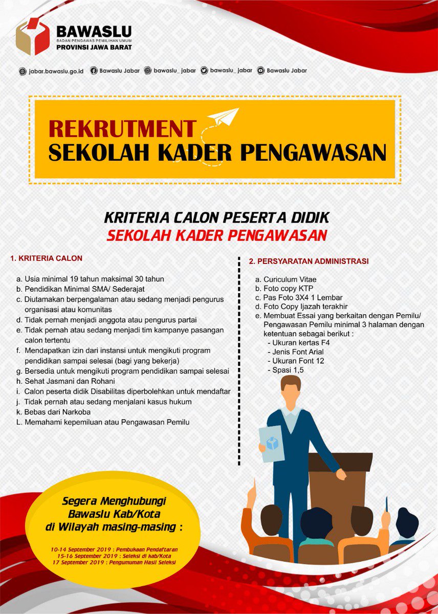 Bawaslu Jawa Barat on Twitter: “OPEN RECRUITMENT !!! #sahabatbawaslu Segeralah Bergabung kader-kader terbaik Demokrasi di Sekolah Kader Pengawasan. siapkan semuanya dibawah ini : (1)… https://t.co/sqUmUJvBuC”