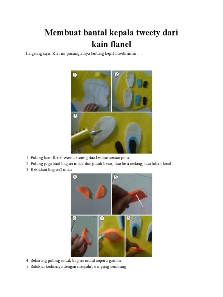 Membuat Bantal Kepala Tweety Dari Kain