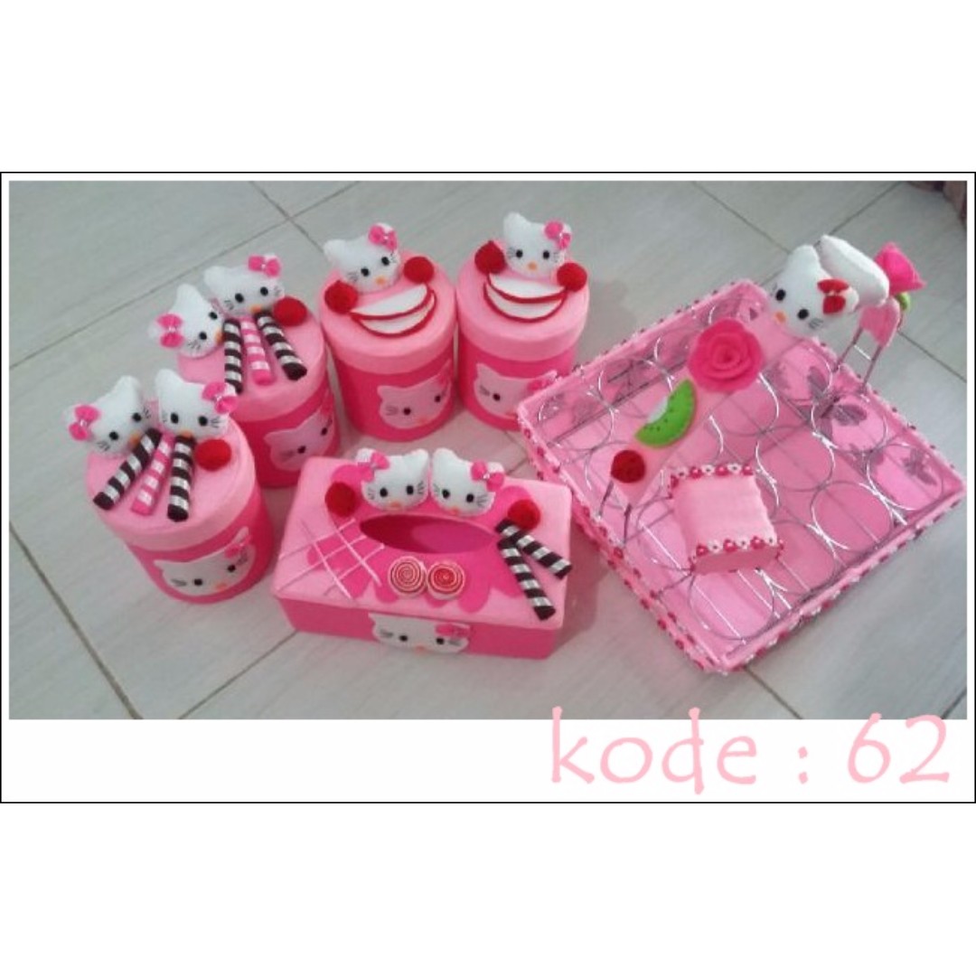 Jual toples set keranjang air mineral aqua 16 hias flanel hello kitty cek harga di PriceArea.com