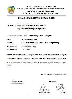 Surat Permohonan Perubahan Specimen Rekening Bank
