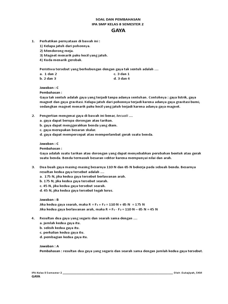 Soal Dan Pembahasan Gaya