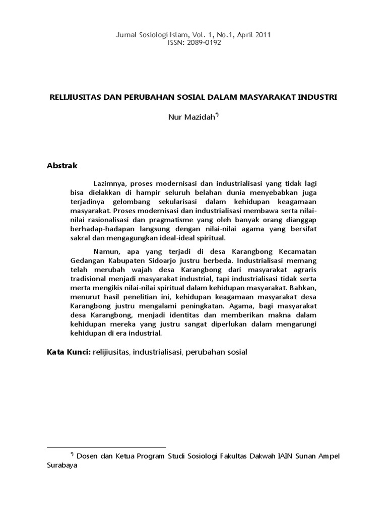 PDF) PERAN AGAMA ISLAM DALAMPERUBAHAN SOSIAL MASYARAKAT