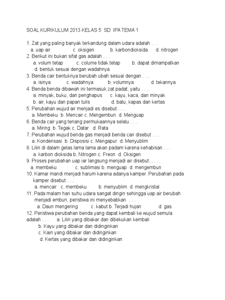 Soal Ipa Kelas 5 Benda Dan Bentuknya