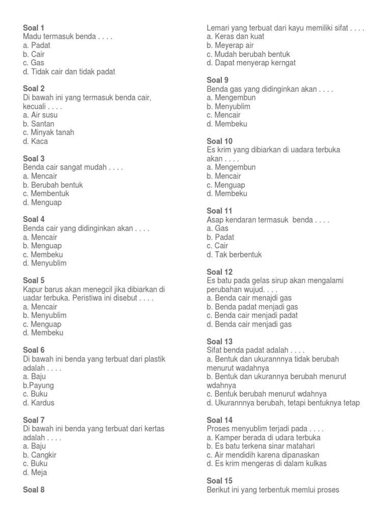 Kumpulan Soal SD: Materi Soal IPA Sifat dan Perubahan Wujud Benda …