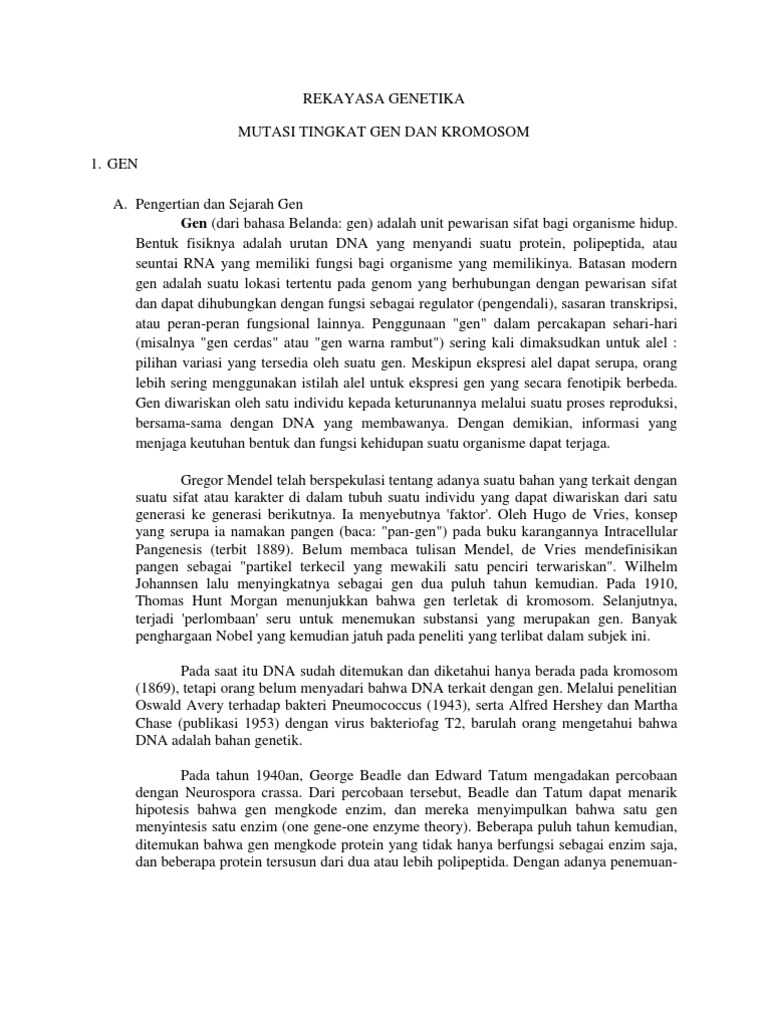 rekayasa genetika mutasi tingkat gen dan kromosom 1. gen a.