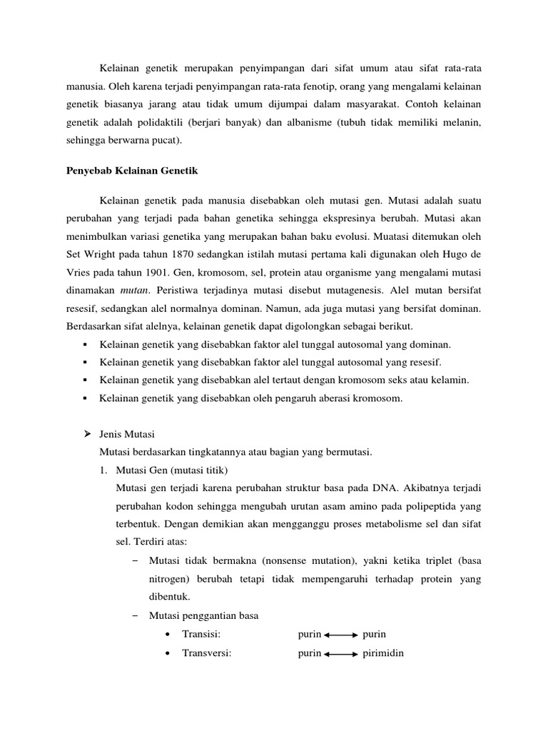 Kelainan Genetik Merupakan Penyimpangan Dari Sifat Umum Atau Sifat …