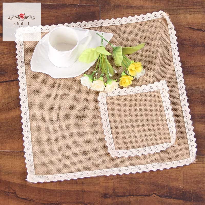 Taplak Meja dengan Bahan Kain Goni Alami dan Hiasan Renda Warna …