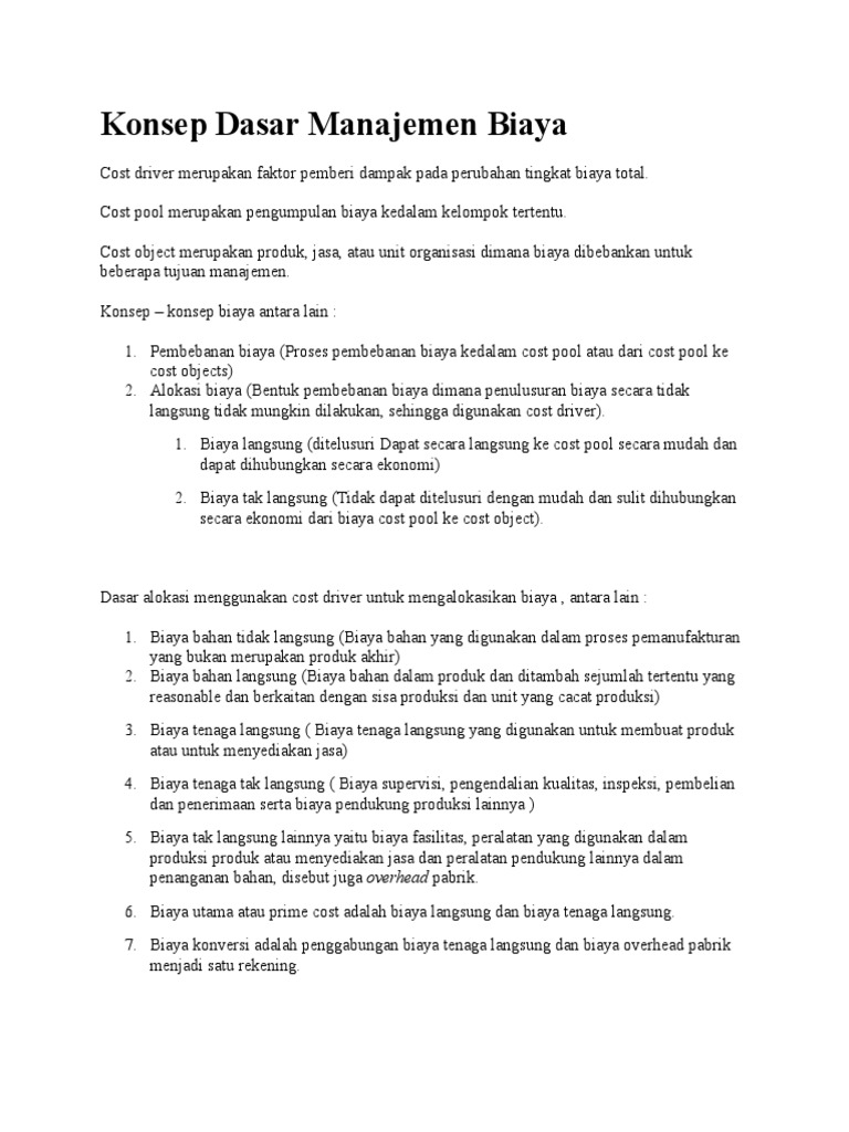 Konsep Dasar Manajemen Biaya