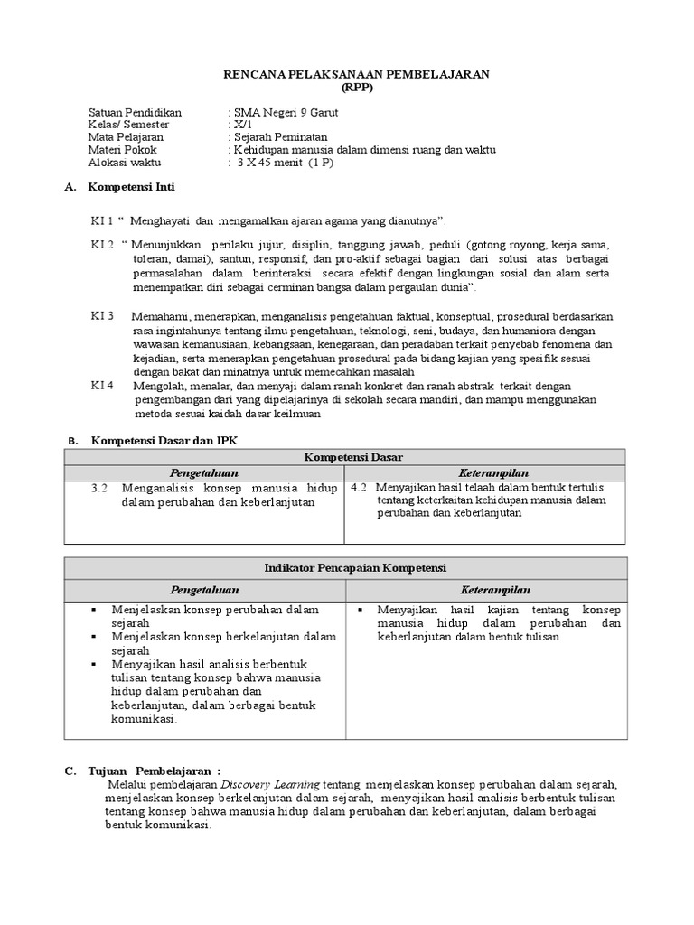 Rpp Perubahan Dan Berkelanjutan Dlm Sejarah