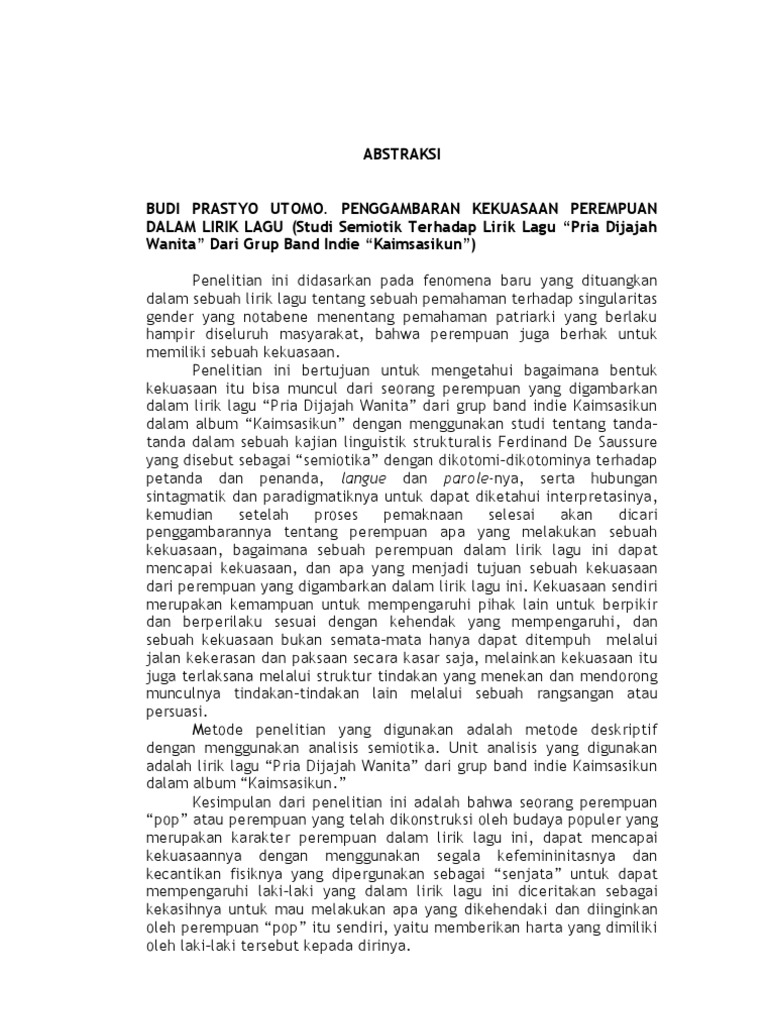 PENGGAMBARAN KEKUASAAN PEREMPUAN DALAM LIRIK LAGU (Studi Semiotik …