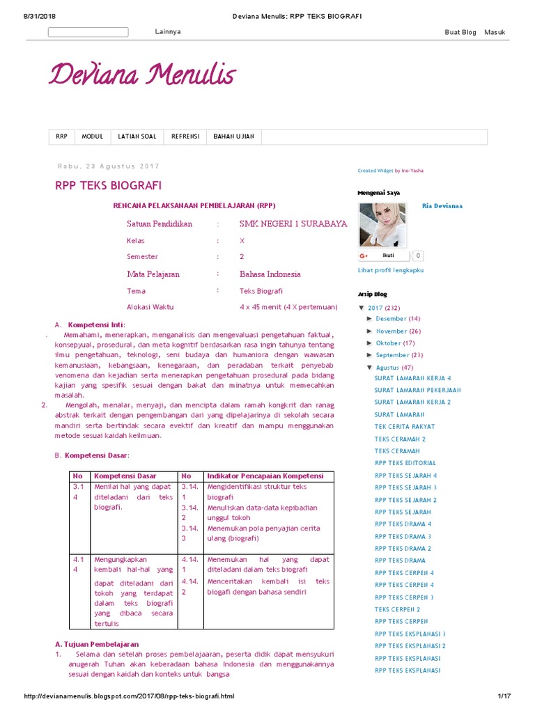 Deviana Menulis_ Rpp Teks Biografi