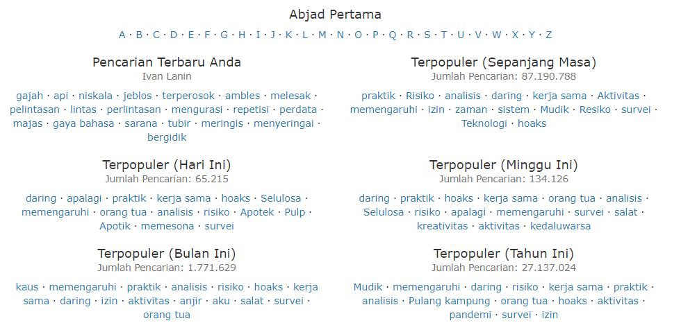 Ivan Lanin on Twitter: “Gunakan menu “Daftar Baru” https://t.co/hIBW1jTC01 yang ada di kanan atas layar situs web KBBI Daring @BadanBahasa untuk mendaftar sebagai pengguna. Dapatkan fitur tambahan—seperti info etimologi dan daftar kata
