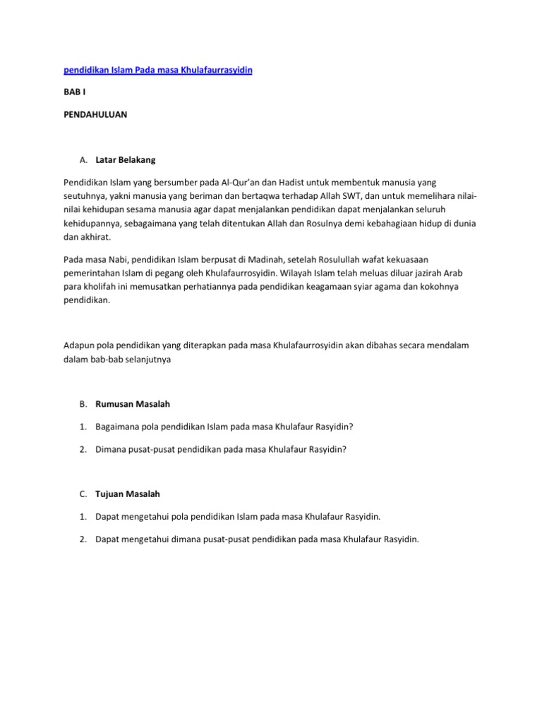 Makalah Sejarah Pendidikan Islam Pada Masa Khulafaur Rasyidin Pdf