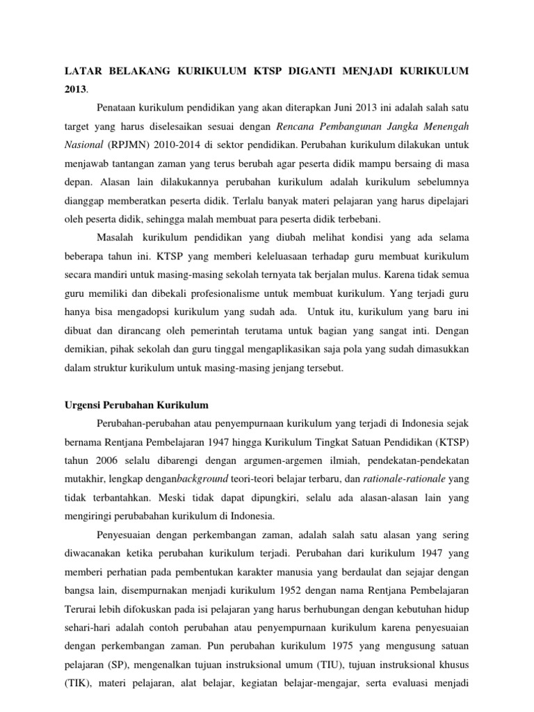 Latar Belakang Kurikulum Ktsp Diganti Menjadi Kurikulum 2013