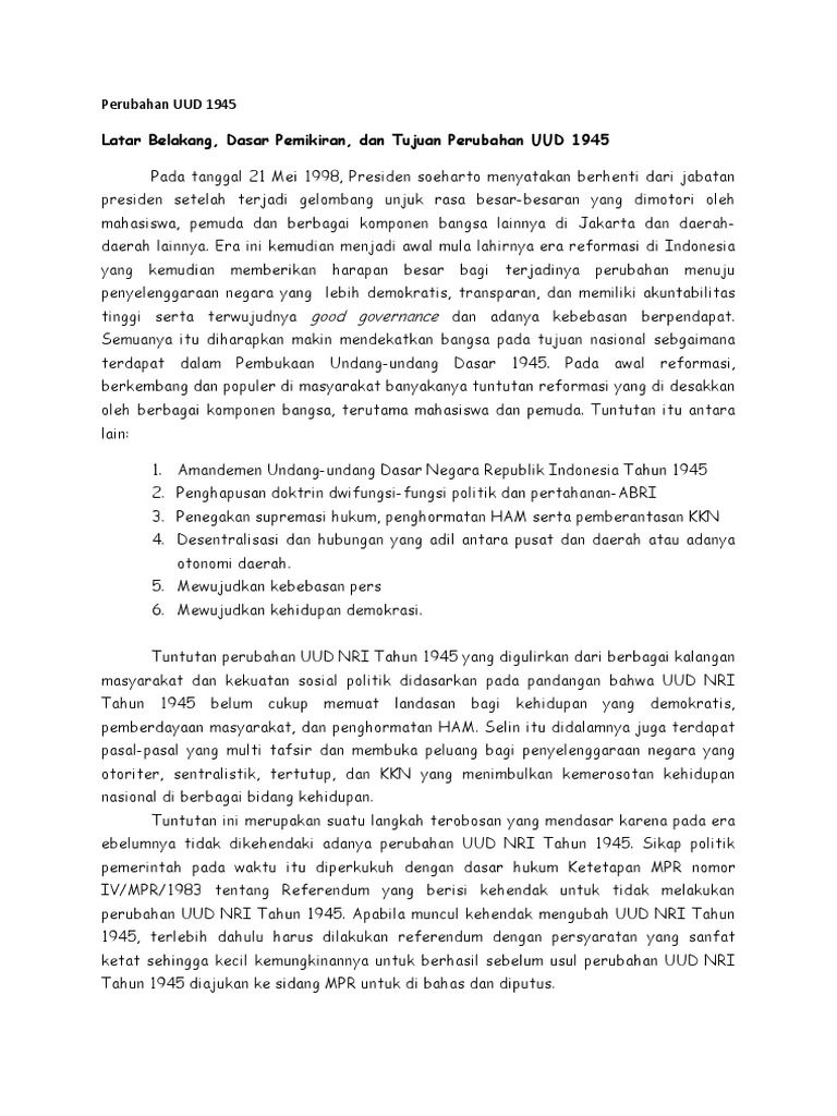 DOC) Latar Belakang Perubahan UUD 1945 | Abizar Giffari - Academia.edu