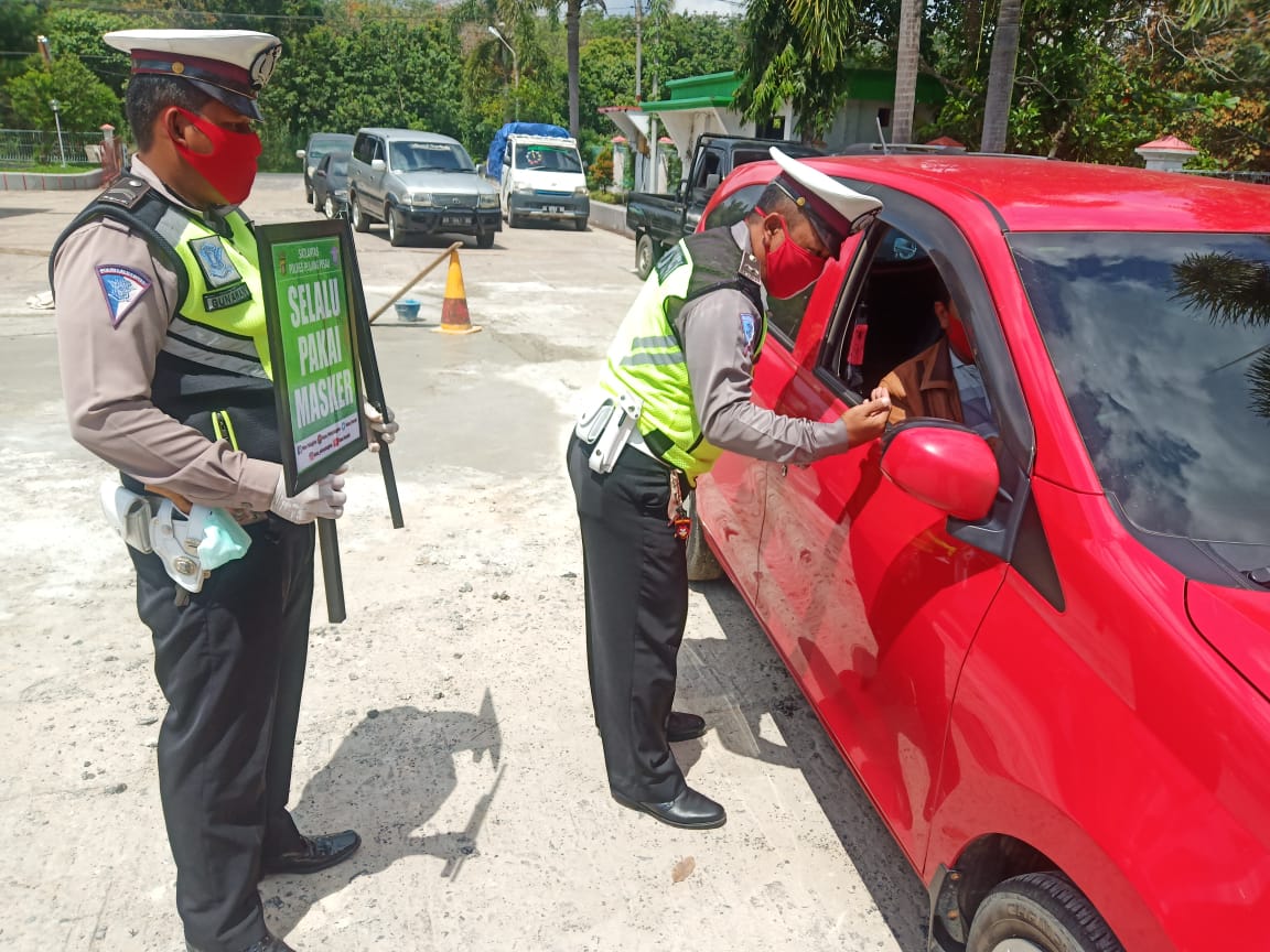 Satlantas Polres Pulpis Bagikan Brosur Leaflet Tertib Berlalu Lintas Serta Pencegahan Penyebaran Covid-19