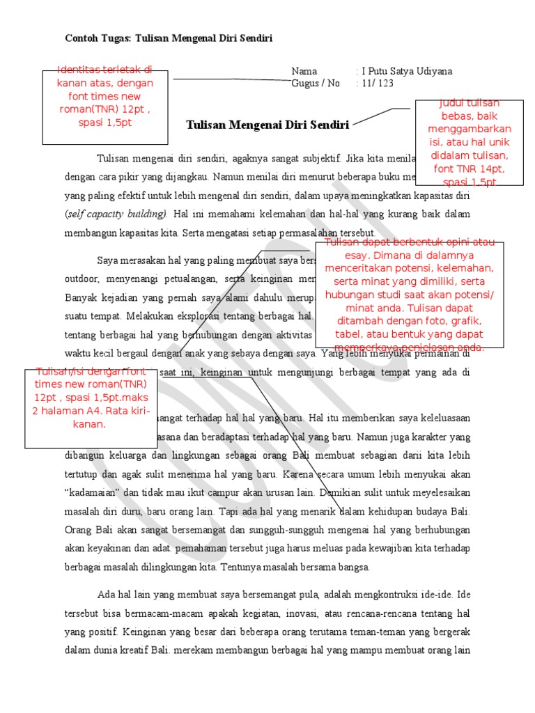 Contoh membuat essay tentang diri sendiri