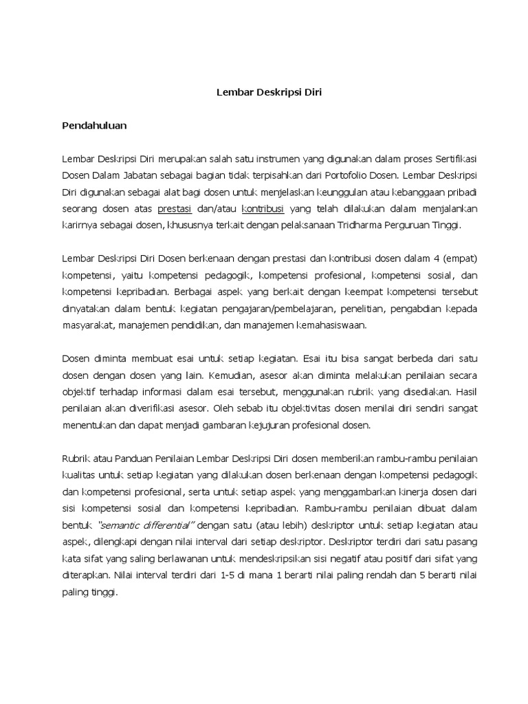Deskripsi Diri Dalam Cv