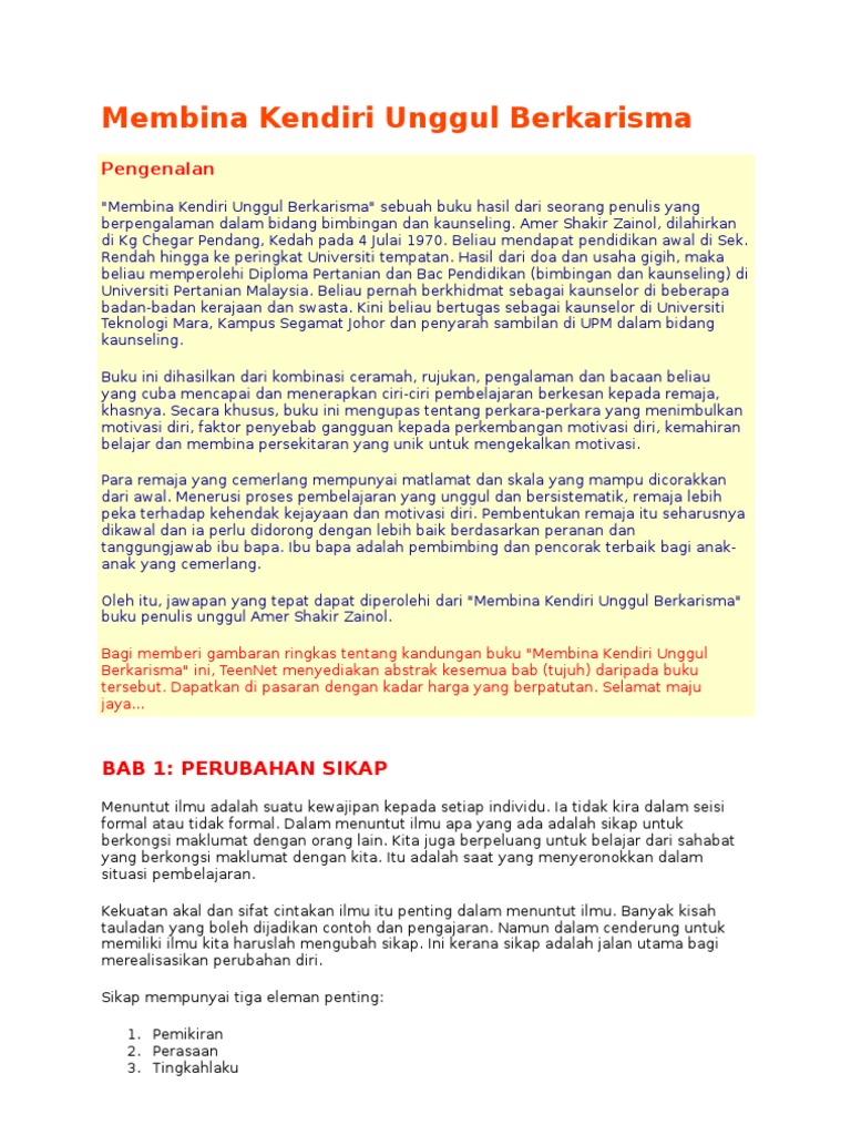 membina kendiri unggul berkarisma