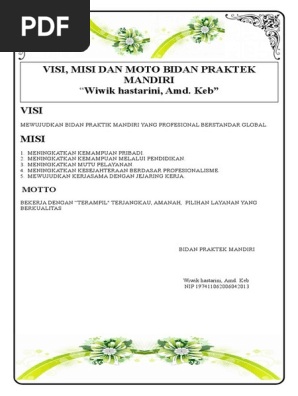 Visi, Misi Dan Moto Bidan Praktek Mandiri Visi Misi: “Wiwik hastarini, Amd. Keb”