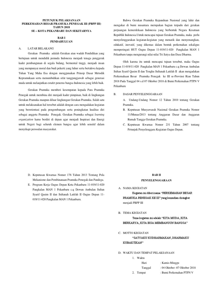 Petunjuk Pelaksanaan Perkemahan Besar Pramuka Penegak Iii (Pbpp Iii) TAHUN 2018 Se – Kota Pekanbaru Dan Sekitarnya Bab I Pendahuluan