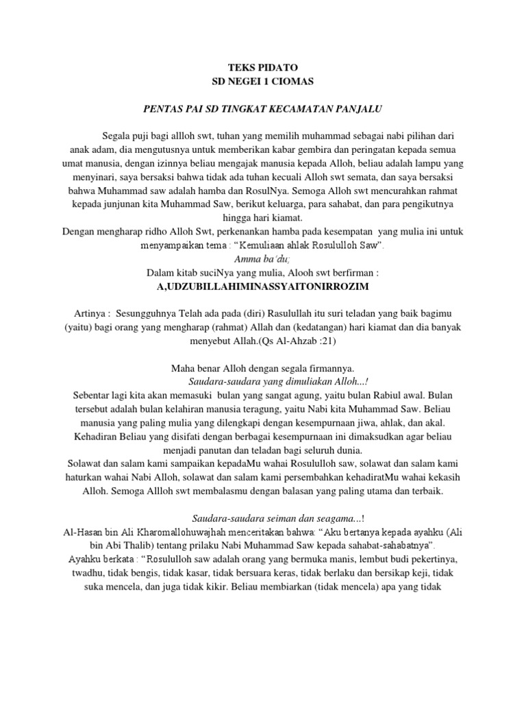 Contoh Pidato Anak Sd Tentang 1 Muharram - SMA Jaten