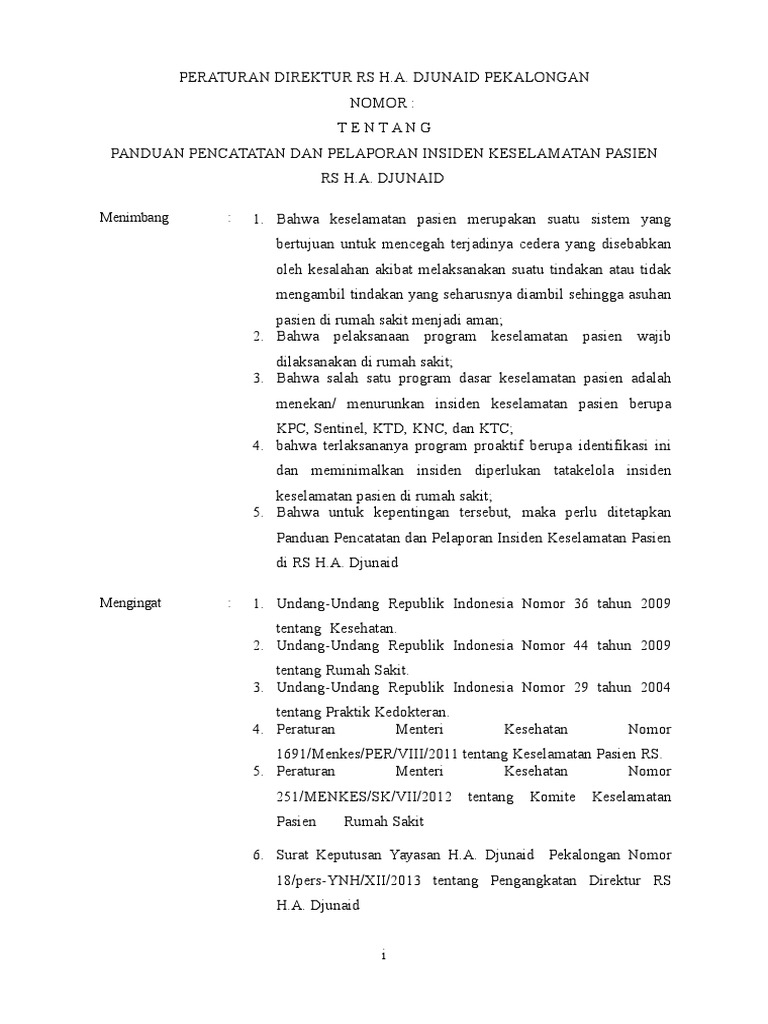 surat keputusan direktur tentang pelaporan insiden keselamatan pasien