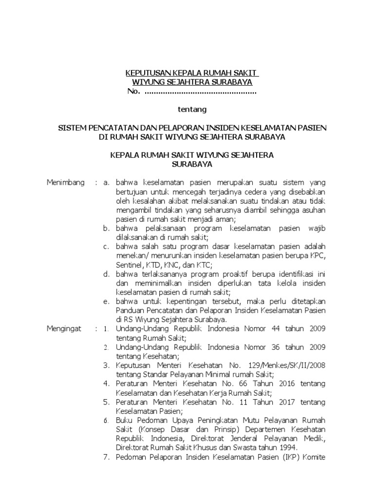 Sk Pedoman Pelaporan Insiden Keselamatan Pasien 2 - PDF Free Download