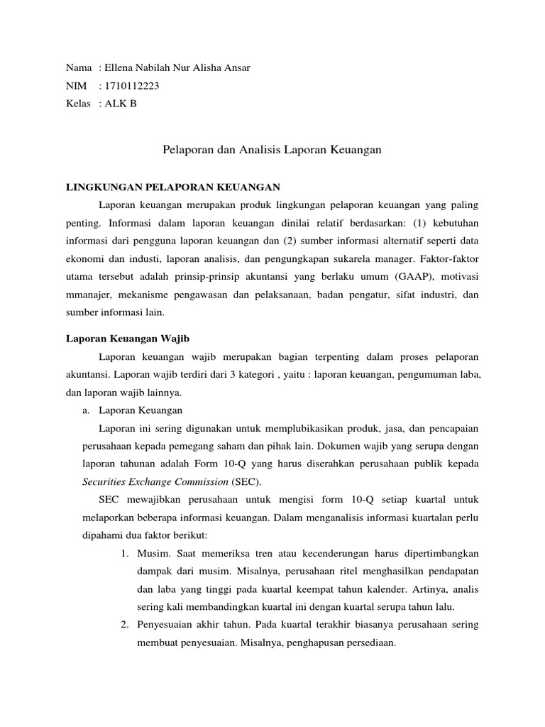DOC) Pelaporan dan Analisis Laporan Keuangan | Anggun Soraya - Academia.edu